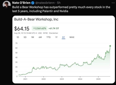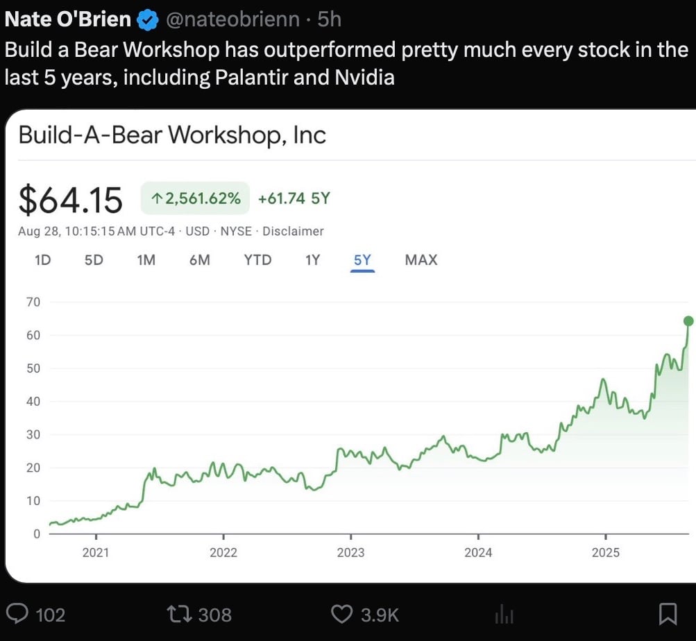 The Build-A-Bear Stock ($BBW) has outperformed nearly every Stock in the past 5 years.